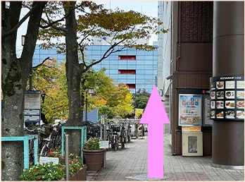 ⑤つきあたりを道路を渡らずに右折します