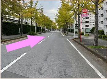 ③側道を直進します