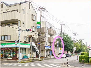⑧横断歩道を直進後、4つ目の信号のところにファミリーマートさんがあります